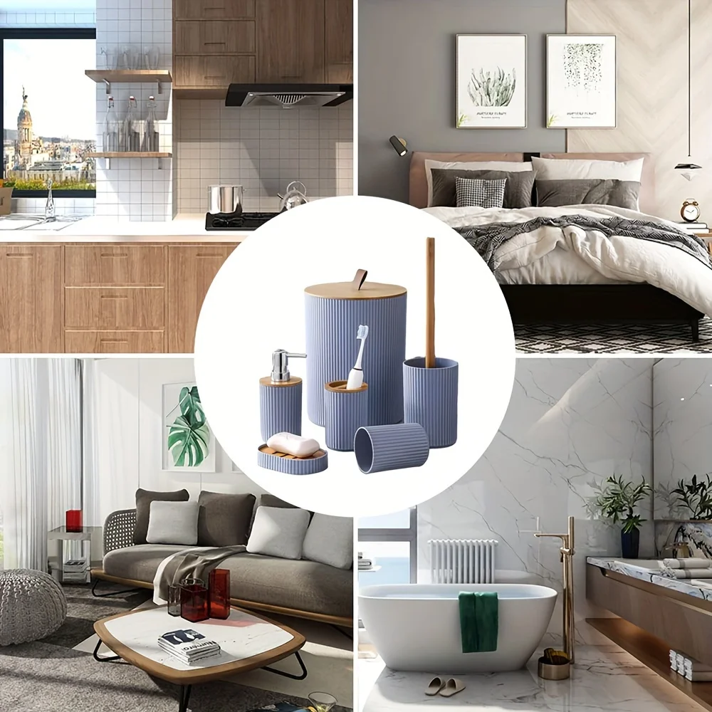 Bathroom Accessories Set: A set containing 6 pieces of bathroom accessories, including toothbrush holder, toothbrush cup, soap dispenser, soap dish, toilet brush holder, trash can, you will get everything you need for your bathroom.